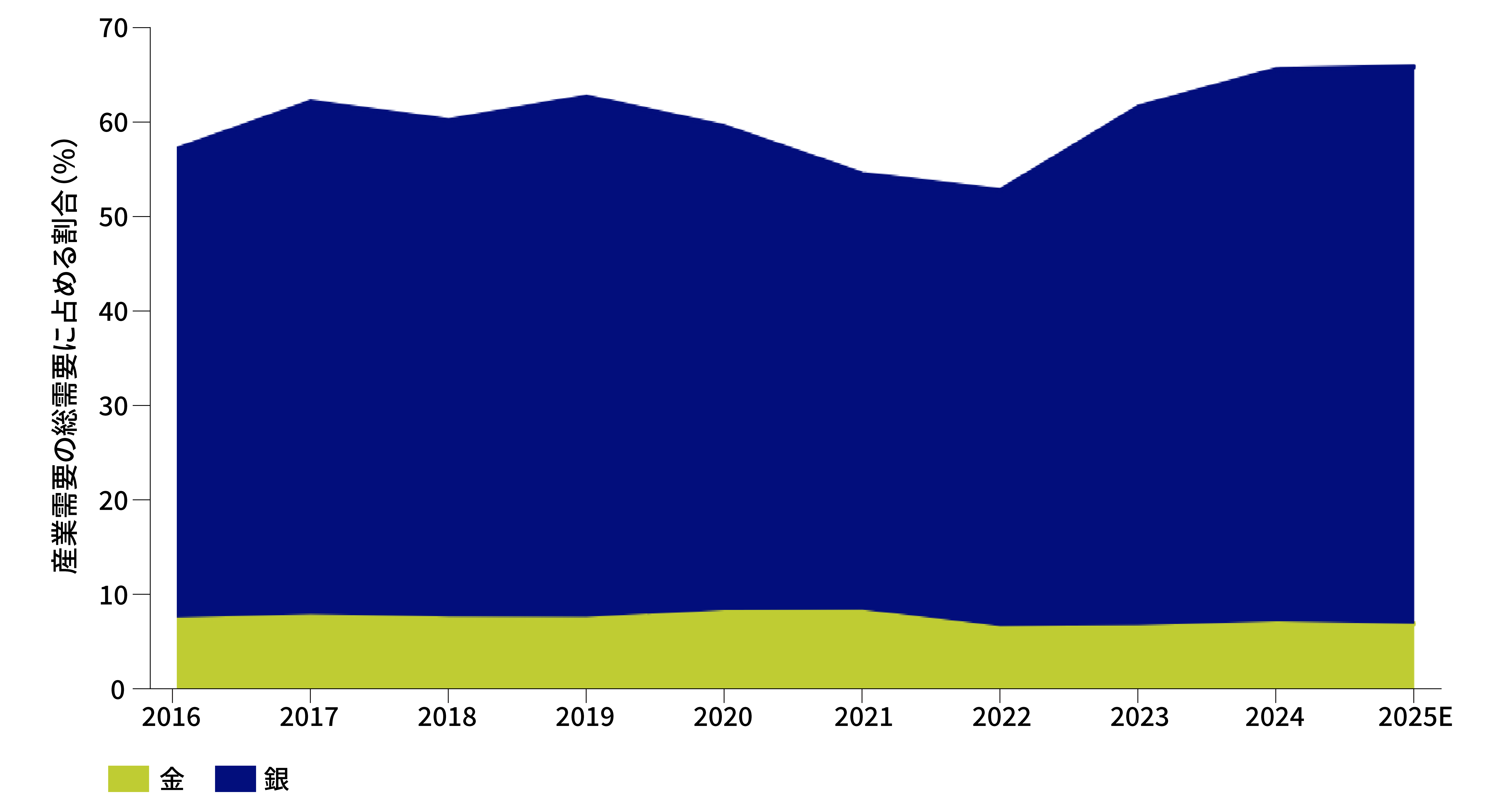 図表2:金に比べて銀は産業界の需要動向に大きく左右される