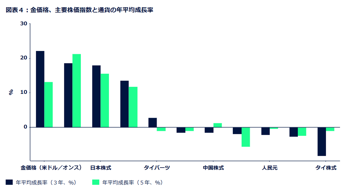 タイでは、タイ証券取引所に上場する有価証券で、(金ETFを含む)外国上場ETFへの完全投資が可能な預託証券(DR)が導入され、国内投資家の間で人気が高まっています。2024年に導入された複数のDRは世界最大の金ETFへのアクセスを提供しており※11、タイの個人投資家は、規制された手軽な投資手段を通じて金への直接的なエクスポージャーを得ることが可能になっています。