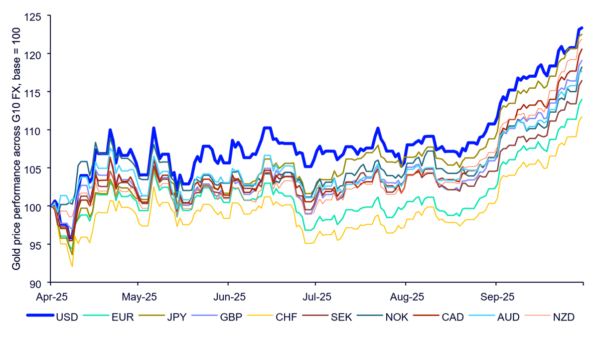 ー不確実性プレミアム︓経済・外交政策の結果として、最も可能性が高いとされるシナリオの幅が広がるにつれ(特に米政府機関の閉鎖が長引いた場合)、金はボラティリティとリスクオフ・ヘッジから恩恵を受けると思われます。
