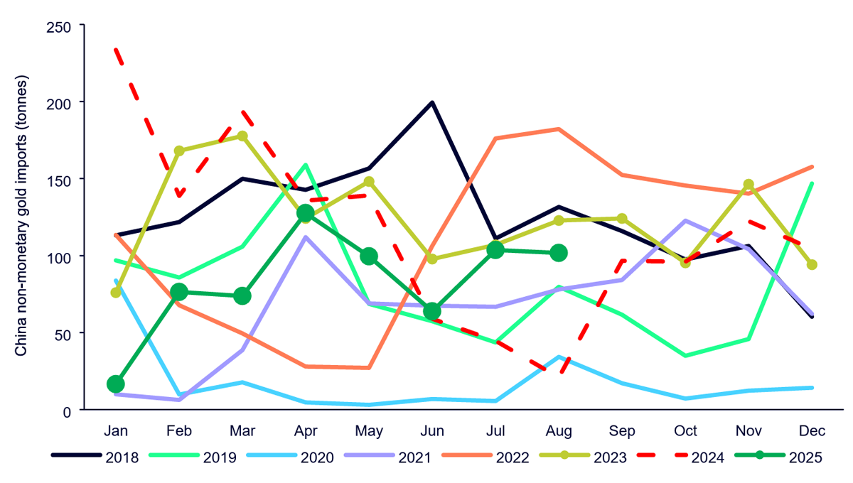 出所:中国税関、ステート・ストリート・インベストメント・マネジメント データ期間:2018年1月~2025年9月