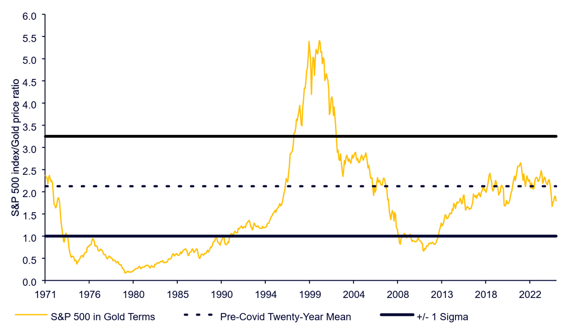 ・米国株が過去最高水準にあるなかで金が最高値を更新していることは、他の条件が全て同じであれば、次のリスクオフ局面やボラティリティショック時において金保有の魅力を高める可能性があります。