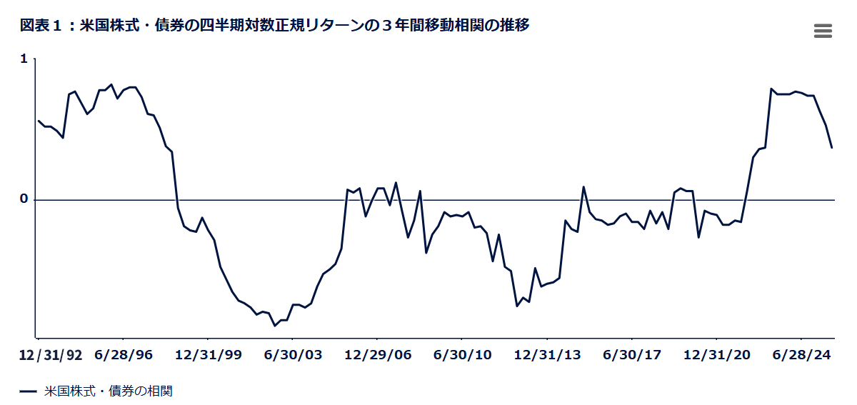 現在の市場をみると、米国株式と米国債券の相関関係は2025年下半期にやや弱まったものの、依然として約27年ぶりの高水準にあります(図表1)。※12021~2022年のインフレ急騰以降続いている米国株式と米国債券の正の相関関係は、代替投資の追加を支持する根拠を強めています。