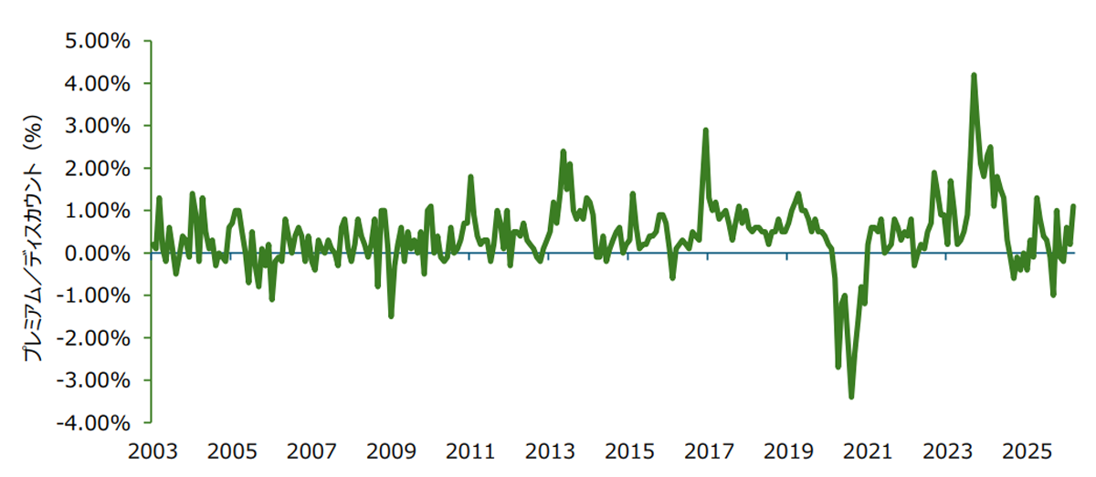 今月のチャート:中国国内における金価格のプレミアム/ディスカウント状態