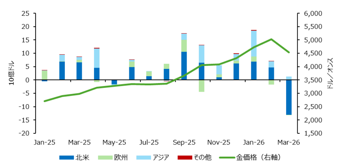 図表3:3 月の北米の金ファンドによる売りは同地域の ETF からの資金流出が要因