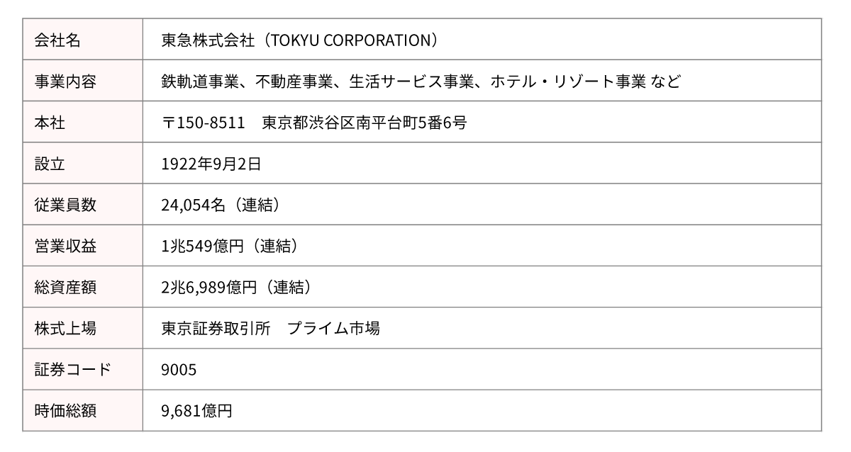 図表1 東急株式会社の会社概要(2025年3月末時点)