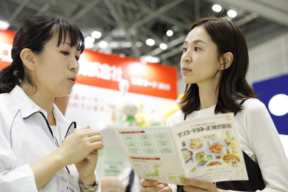 この日も、ケンコーマヨネーズの製品が使われた連結子会社が製造したお惣菜をブースに並べて下さっていましたが、どれも美味しそうでした!ちなみに取材日は9月下旬。紫芋を使った商品など、口の中から秋を感じられるお惣菜も並んでおり、彩りも含めてとっても素敵でした。