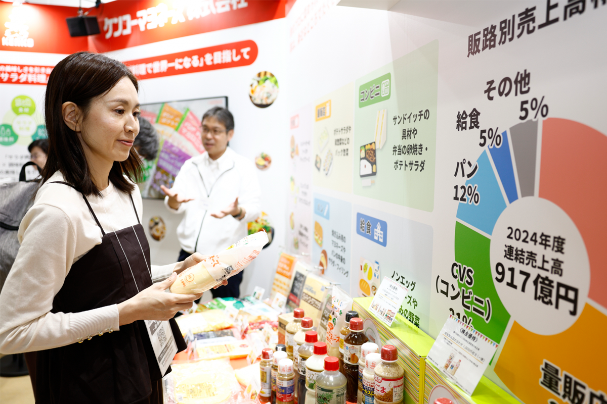 ハナミラレポーターのみどりです!先日、東京ビッグサイトで行われた日経・東証IRフェア2025にレポーターとして参加してきました。ケンコーマヨネーズ株式会社(証券コード:2915 以下、ケンコーマヨネーズ)はマヨネーズを中心に原材料となる卵やマヨネーズを使用したサラダや、お惣菜などを飲食店やコンビニ等向けに商品を展開されている業務用の食品メーカーです。私自身、それまでマヨネーズの会社、というとスーパーによく並んでいる某大手メーカーしか知らなかったため、卸先が個人なのか、会社なのかで、普段目にするブランドも、同じ調味料でも全然異なるんだなぁ、ということを今回の取材で学びました。