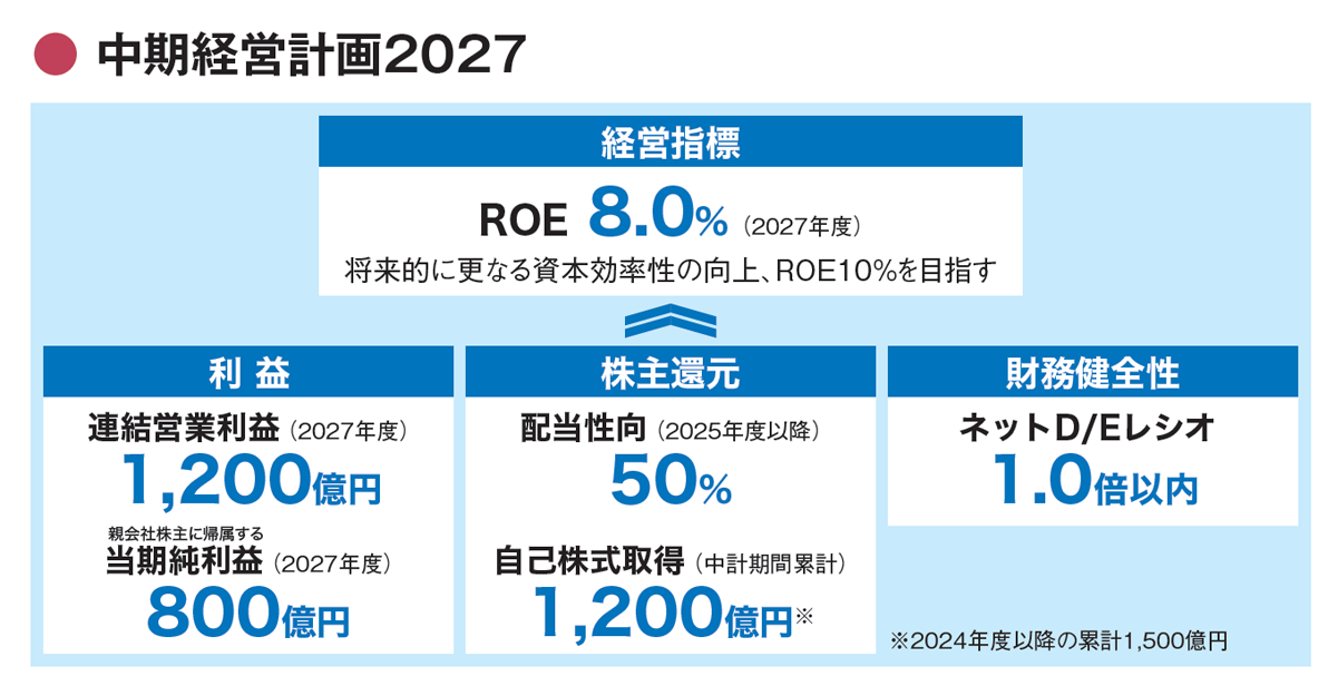 利益拡大とともに自己株式取得も進め、ROEの大幅改善を図る