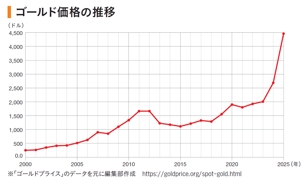 もちろん、需要が減ればゴールドの価格だって下がります。それでも、希少性が高い資源であることに変わりはなく、通貨のように自由に供給量を増やすこともできません。また、ゴールドは生産コストが価値の下限になります。現在(2025年12月時点)の金価格は1oz(トロイオンス)あたり4000ドルを超えていますが、ゴールドを採掘して精錬する生産コストは2000から2500ドルとされるため、それ以上に下がることはないといえます。
