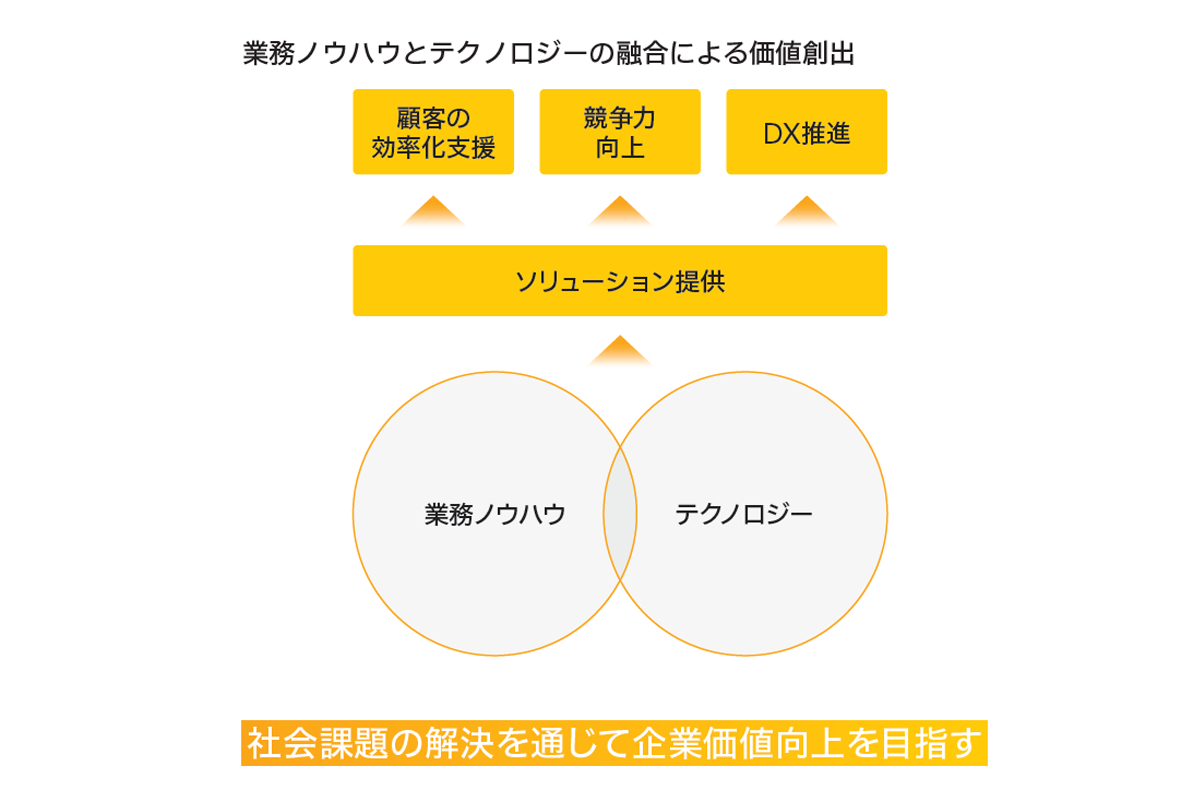 業務ノウハウとテクノロジーの組み合わせにより、ソリューション比率を高めていく